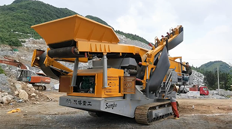 履帶式移動破碎站,液壓驅動,在山地、平地都能行走自如,爬坡能力強,爭分奪秒投入開采作業。